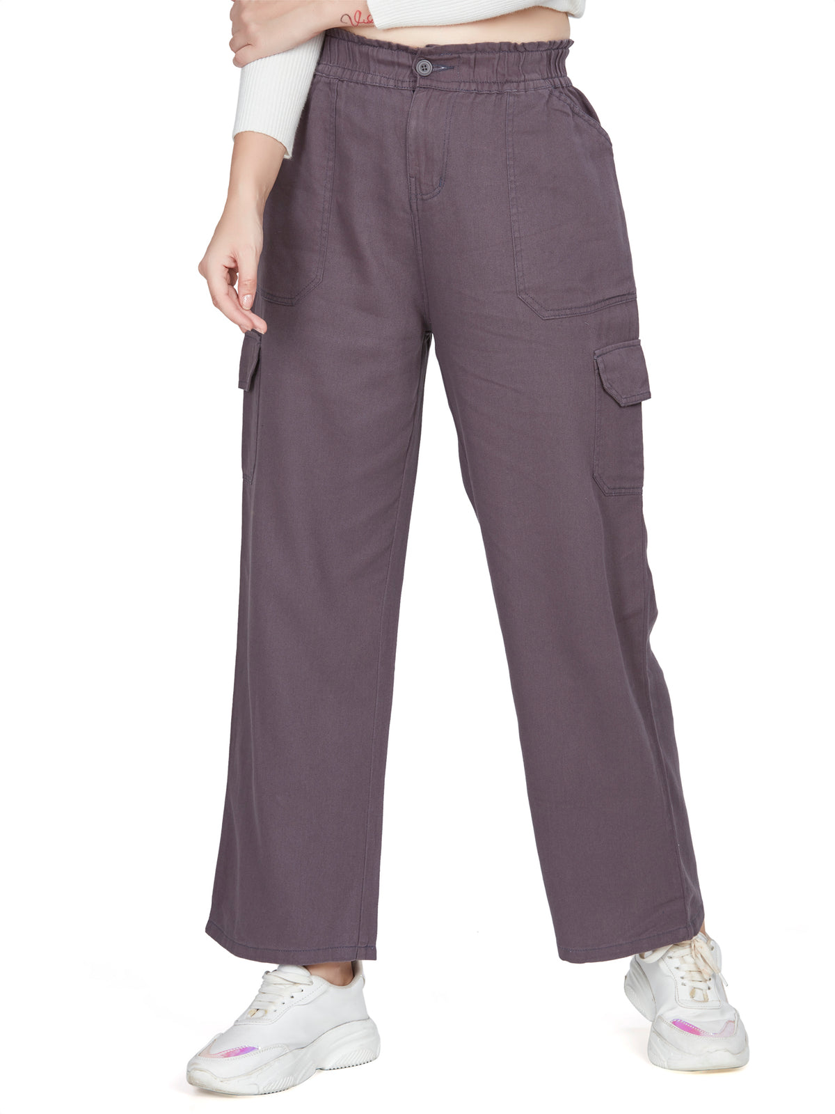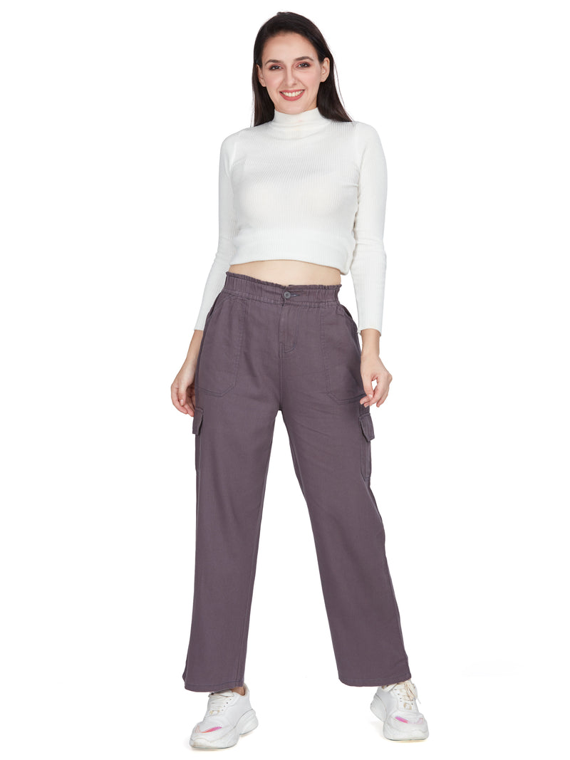 Dark Wine high rise cotton non-lycra Cargo 6 Pkt