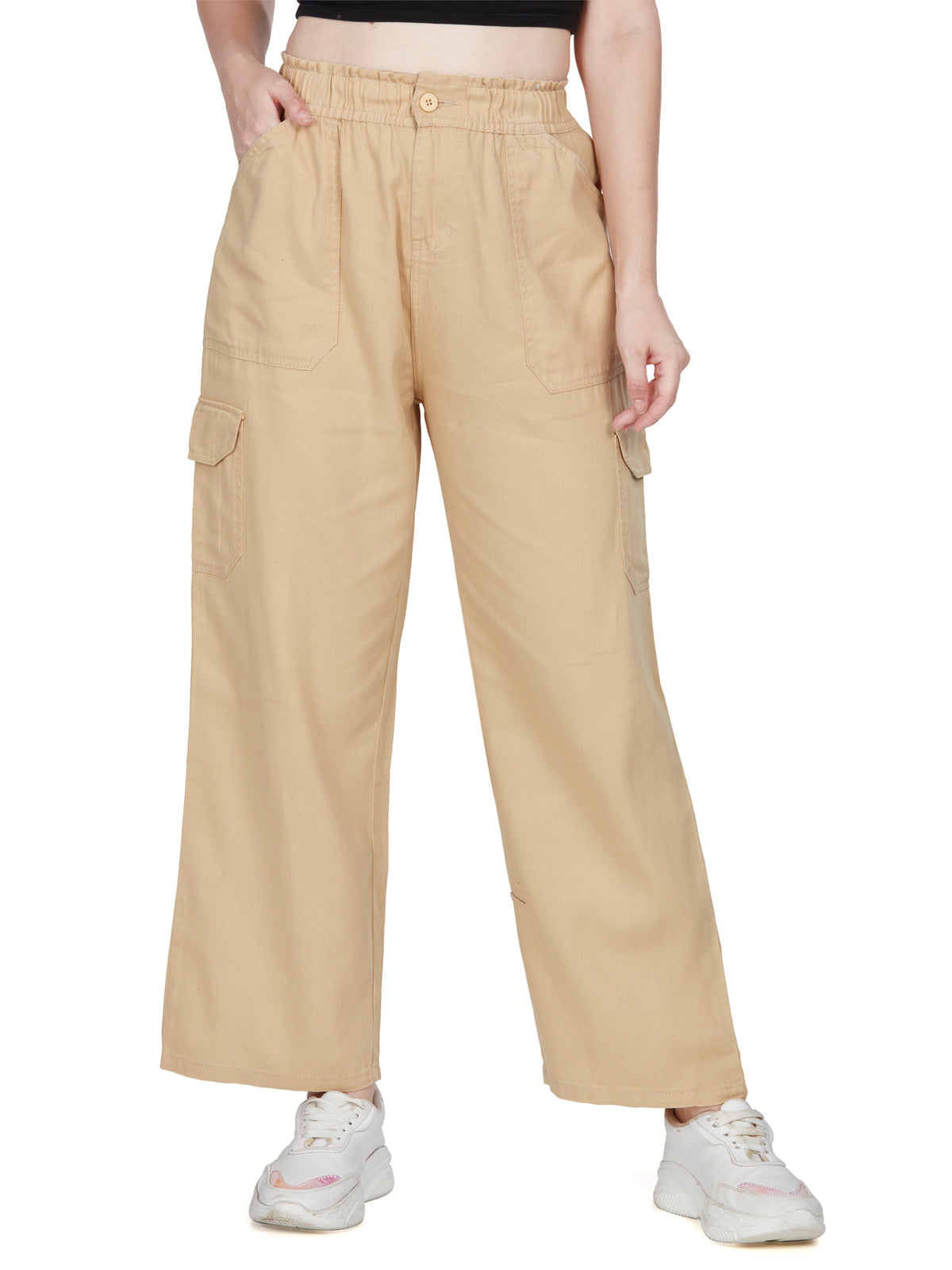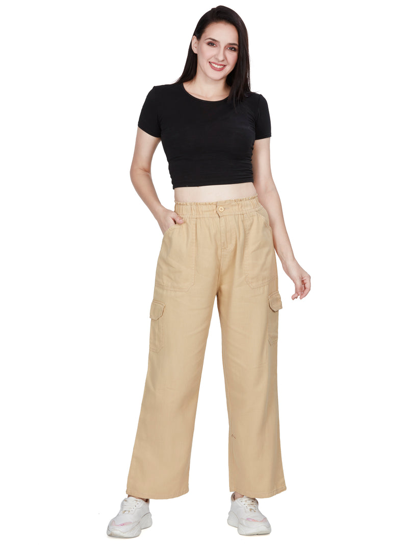 Light Khakhi high rise cotton non-lycra Cargo 6 Pkt