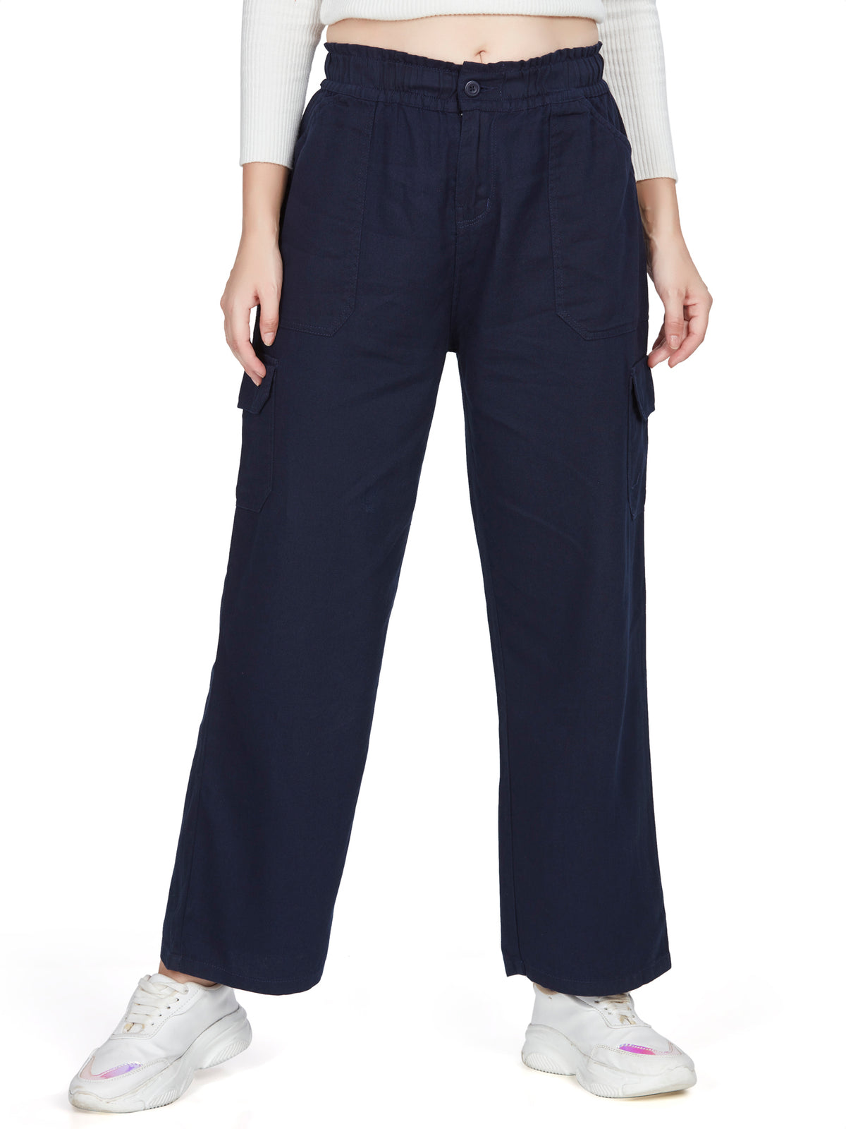 Dark Nevy Blue high rise cotton non-lycra Cargo 6 Pkt