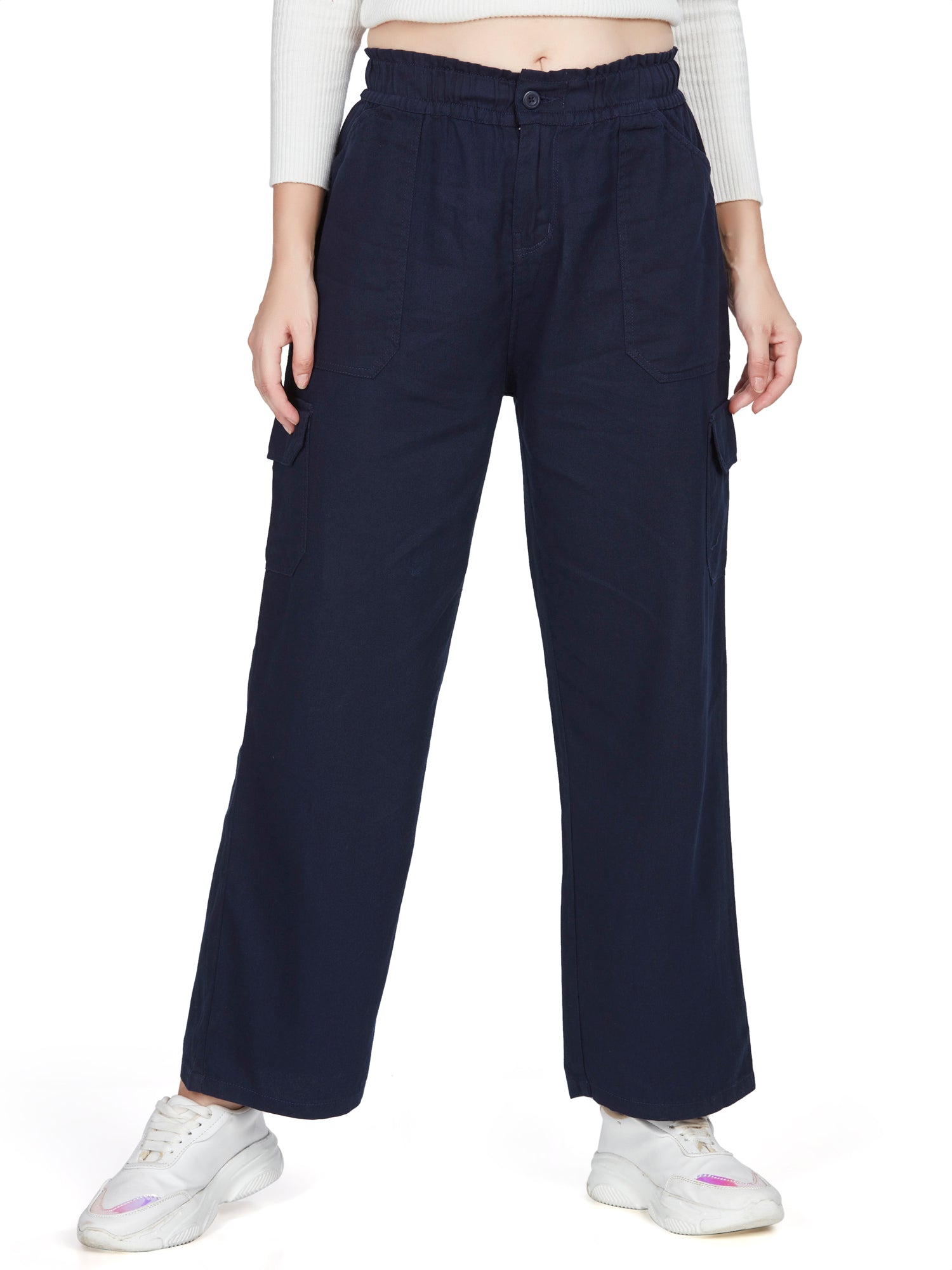 Dark Nevy Blue high rise cotton non-lycra  Cargo 6 Pkt
