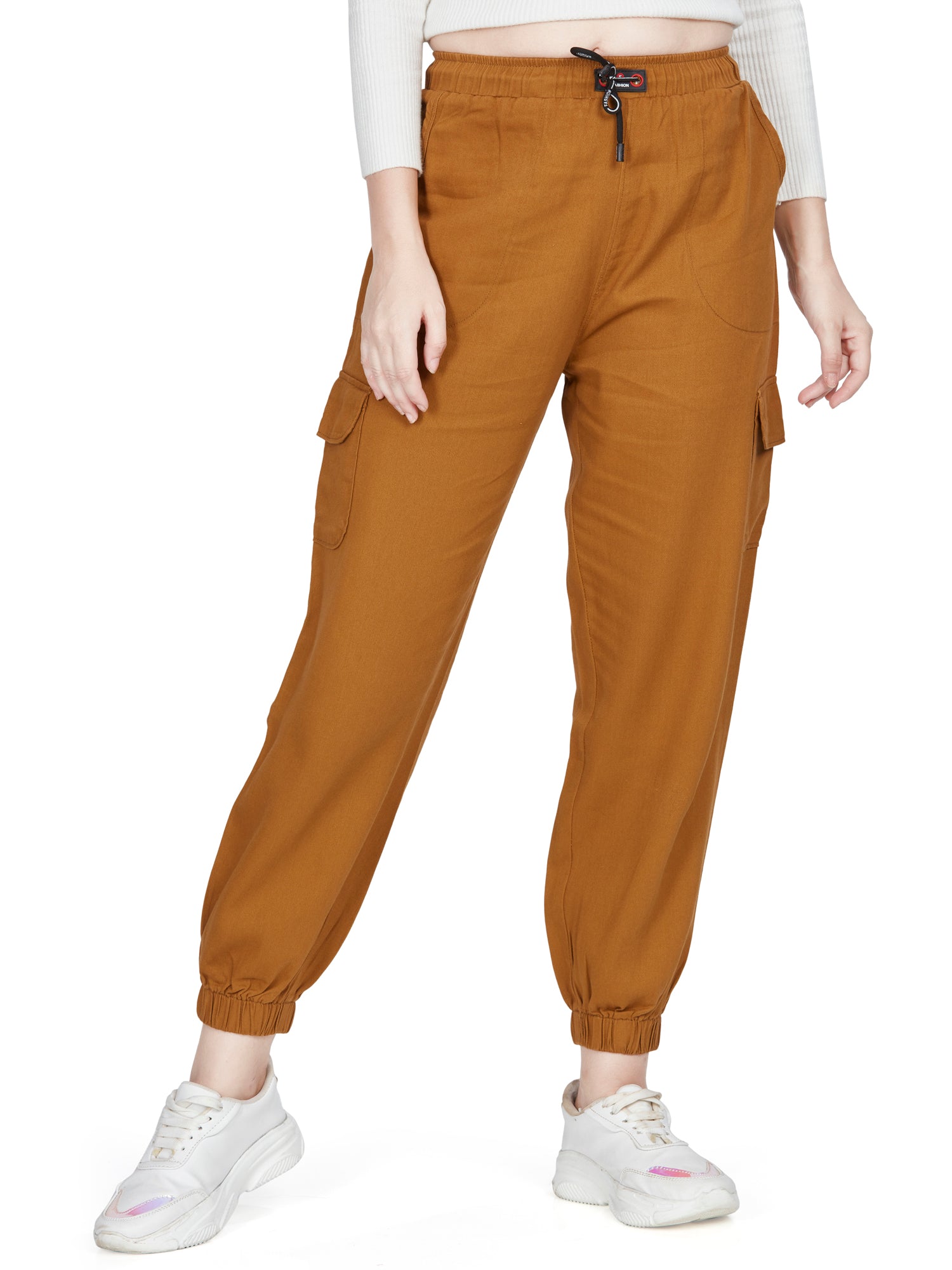 Dark rust high rise cotton non-lycra Joggers Cargo